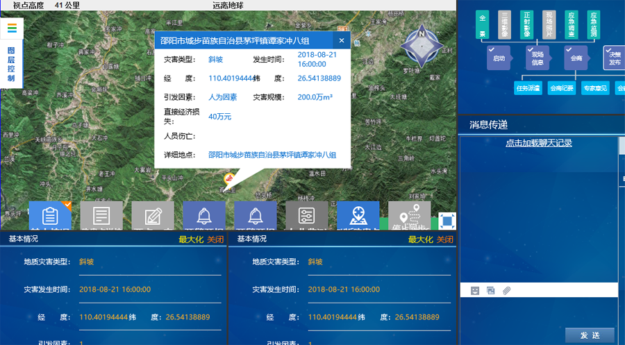 包括图层控制、数据管理、应急事件管理、应急调查、现场信息、数据上传等内容。
